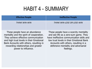 Public Victory Interdependence 7. Seek First to Understand Then. Think WinWin Habit 5.